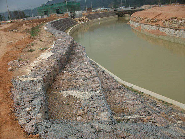 鋪設(shè)了帶有石籠網(wǎng)保護(hù)設(shè)施的擋土墻。籠子中的填充物疏松,有許多孔,有利于邊坡防護(hù)和砌筑后的填充,有利于土壤中孔隙水的排泄。地表水一旦滲透到土壤中,便可以通過(guò)砌體快速排出,有效地降低了地下水位,然后降低了墻后和斜坡下的地下水壓力。用于河道治理的石籠網(wǎng)的布置在滑坡管理和泥石流防治項(xiàng)目中,及時(shí)排水以減少墻體破壞的可能性。