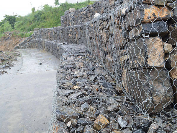 2.地基準備:放置塞克格賓的地基無需太平實。在地基環(huán)境差的濕地環(huán)境中,石籠網(wǎng)可以用來提供固定式平臺。根據(jù)工程需求,裝入適當?shù)牟牧?,層層放好賽克格賓。格賓結(jié)構(gòu)也要符合工程規(guī)范。可以把土工織物夾在各個格賓層中。